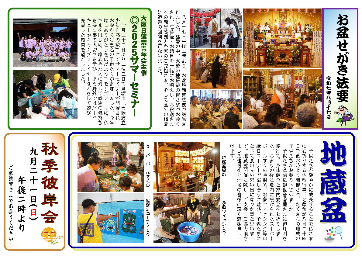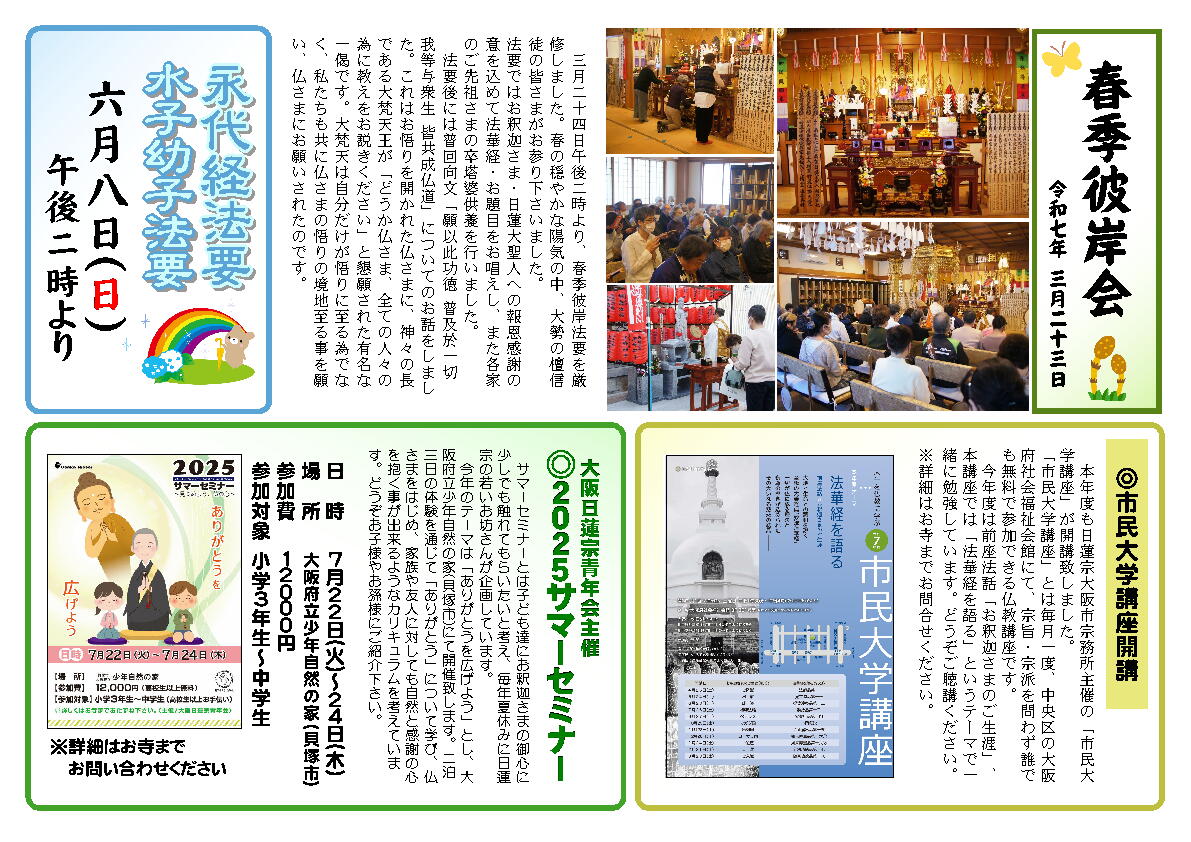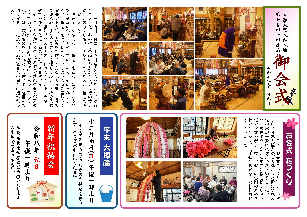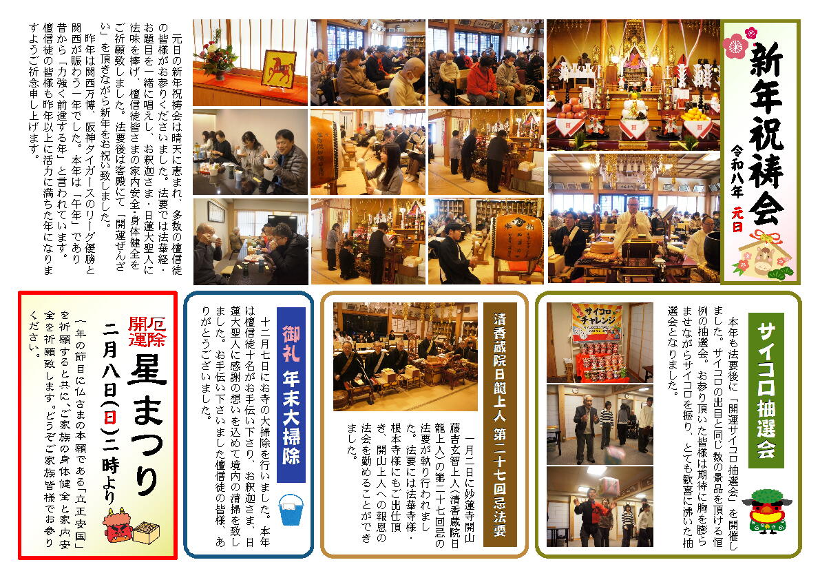 一年の節目に仏さまの本願である「立正安国」を祈願すると共に、ご家族の身体健全と家内安全を祈願します。
