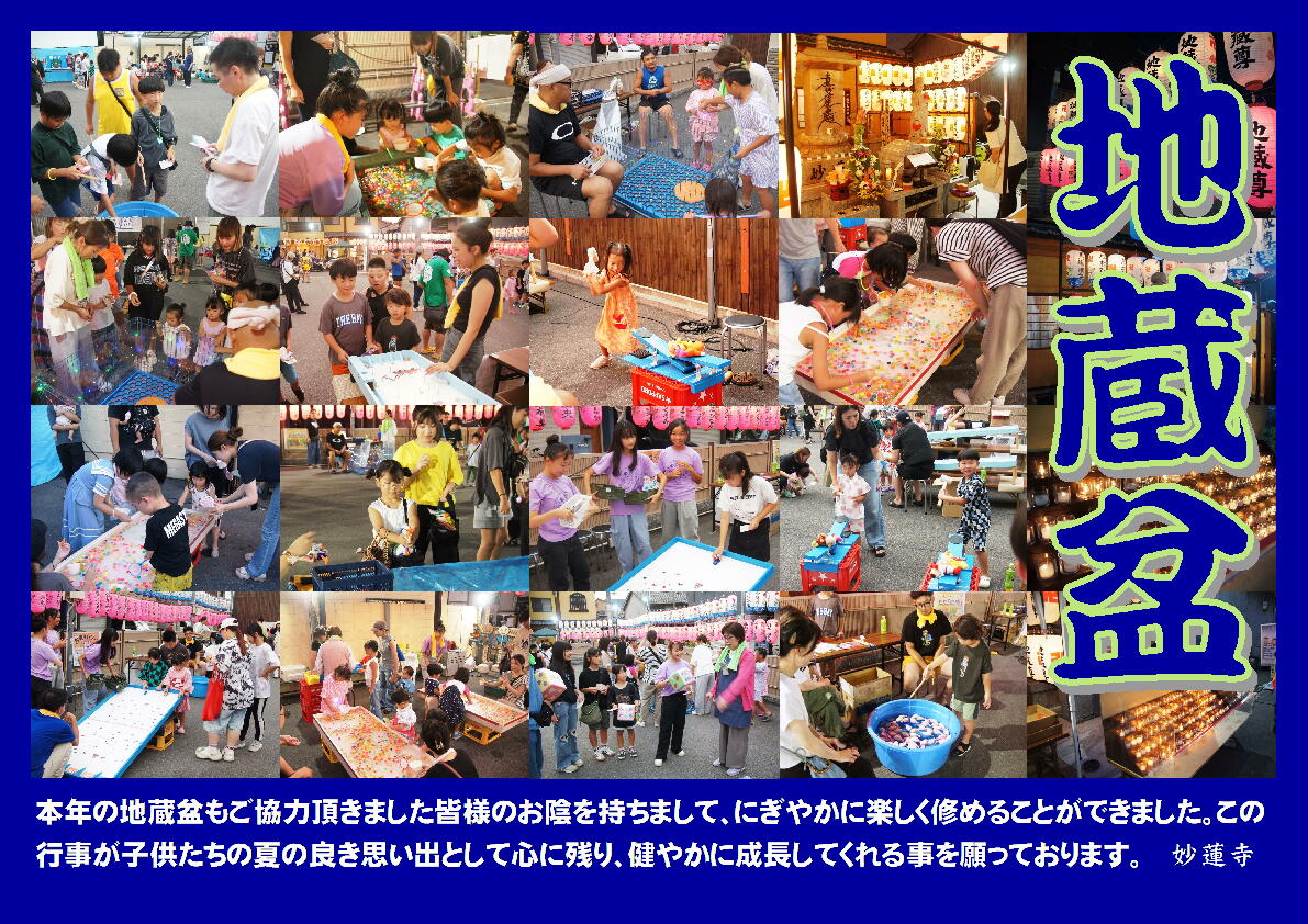 地蔵盆は子供たちのお祭であり、お子さまの名前を書いた提灯を奉納し、発育増進を祈願します。