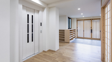 エントランス横にエレベーターを設置しています。2階本堂へはどうぞご利用ください。